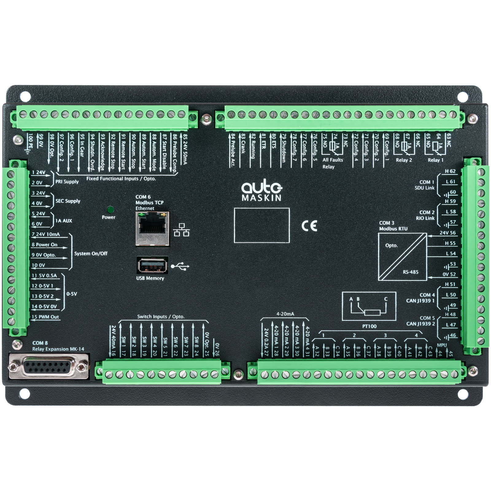 The DCU 408E is a base building block to build a supervision system for both variable speeds (propulsion or pumps) or fixed speed (generating set) diesel engines. It provides the same level of functionality as it’s sibling, the DCU 410E Engine Controller, without a display and input buttons.